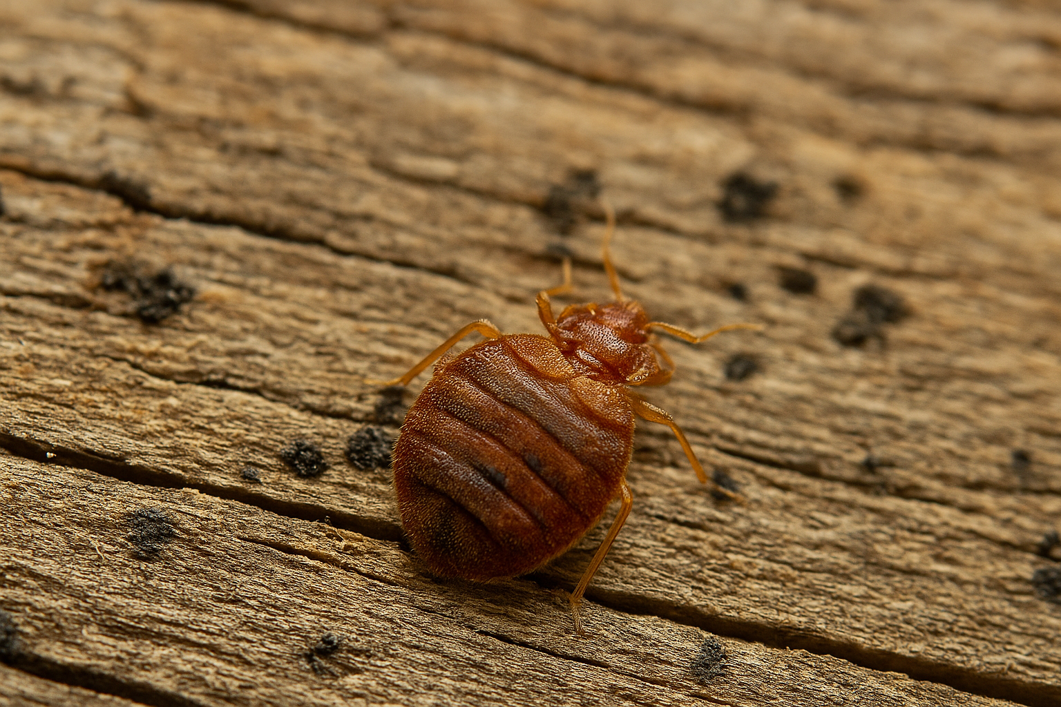 The blood meal is when bed bugs truly reveal their hidden talents. Both nymphs and adults use a sharp, straw-like mouthpart, called a stinger, to pierce your skin while you sleep and silently suck blood. Adults are about 1/4 inch (0.6 cm) long, with a flat, oval, reddish-brown body, long legs, and no wings—perfect for hiding in cracks and crevices. Within 10 to 15 minutes, they’re completely satiated with blood and then withdraw to digest.